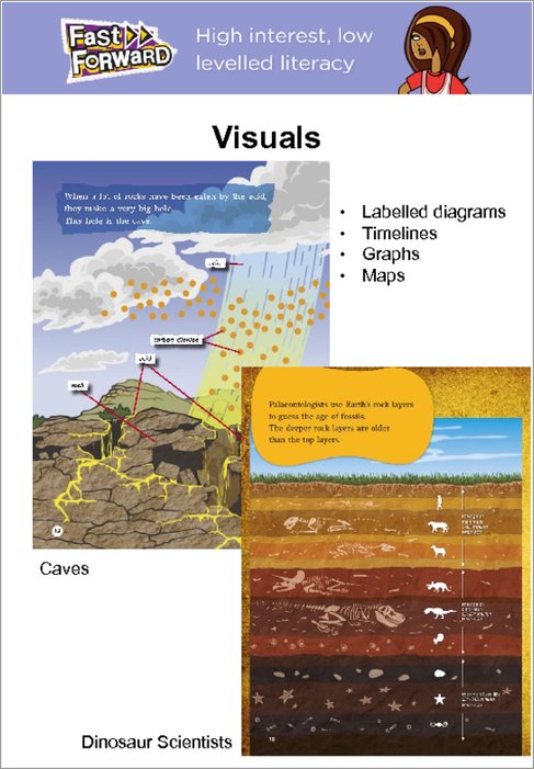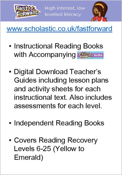 Fast Forward Instructional Texts are especially designed for teacher-led guided or shared reading sessions with less-able readers (either individuals or groups at the same level) and form the core of Fast Forward’s finely-levelled approach. Vibrant illustrations and photographs are paired with engaging, varied topics and stories to ensure that there’s something for every type of reader. Audio to accompany each Instructional Text can be downloaded from www.scholastic.co.uk/fastforwardaudio.
