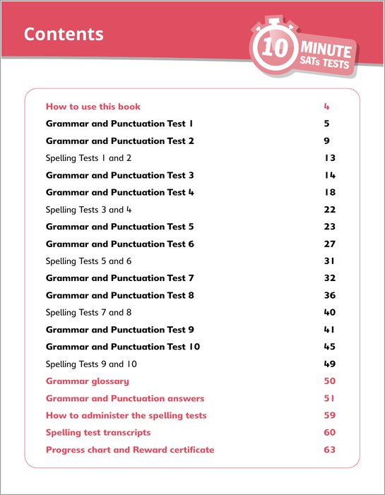 - 10 complete grammar and punctuation tests and 10 spelling tests