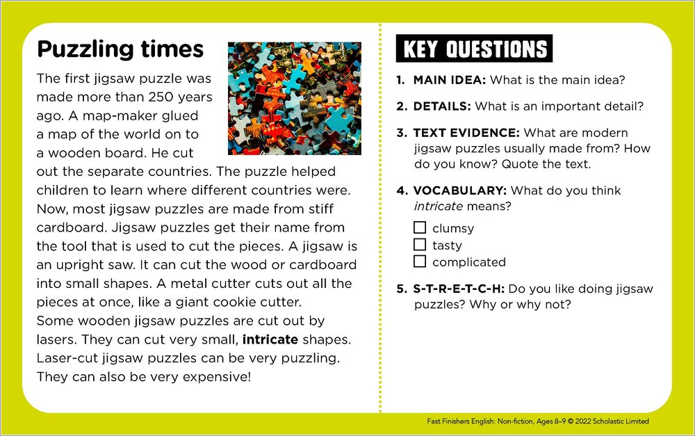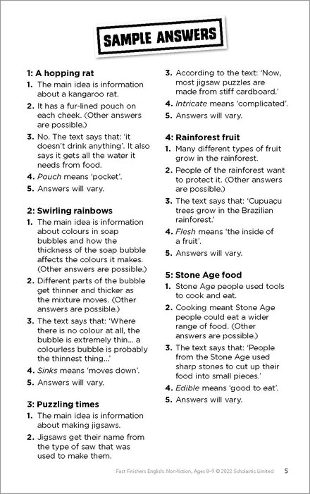 Fast Finishers English: Non-fiction Ages 8-9