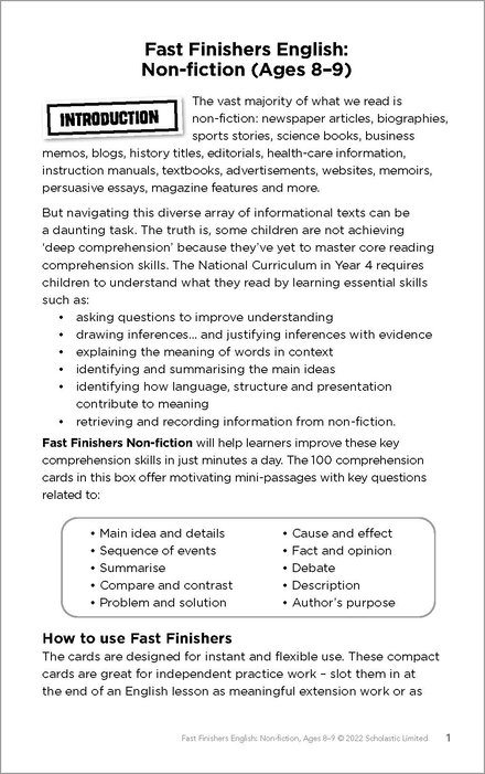 Fast Finishers English: Non-fiction Ages 10-11
