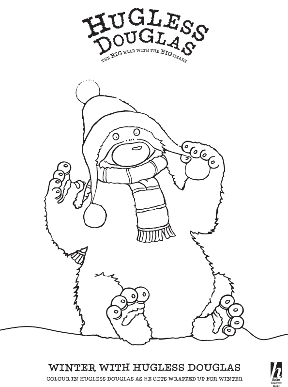 Here’s a lovely snowy picture of Hugless Douglas for you to colour.