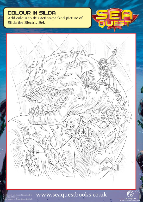 Here’s an action-packed picture of Silda the Electric Eel for you to colour!